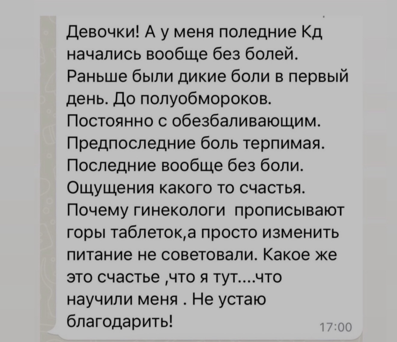 Вы сохраните овуляцию и полноценную вторую фазу. ПМС станет мягче или уйдет совсем. Вы не запустите миомы и кисты. Вы не войдёте в 40 с истощённой нервной системой и горстью таблеток, только чтобы просто уснуть.